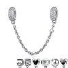 7 Styles, 925 Sterling Silver Pave Safety Chains, Clear CZ Stopper Charms Fit Pan Charm Bracelet