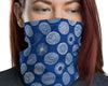 Fireworks design, white blue abstract circles, Neck gaiter face cover head wear headband wrist band wrap balaclava mask bandanna beanie hood